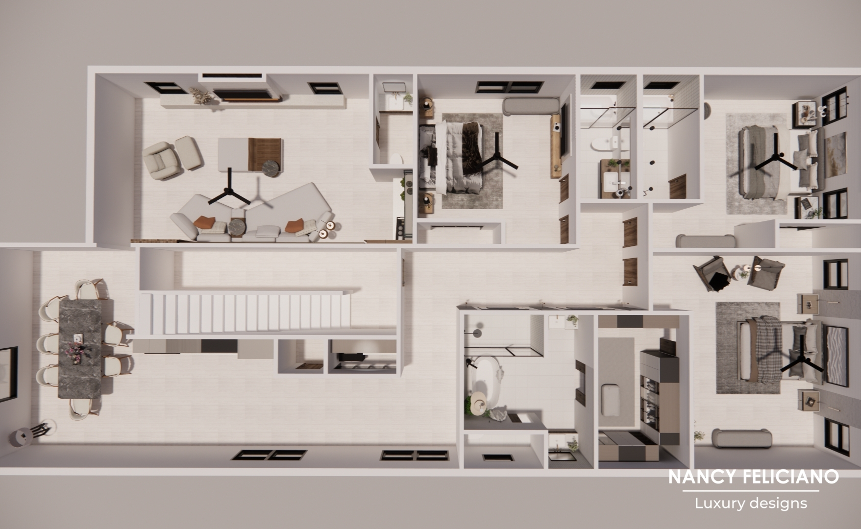 At NF Luxury Designs, our team of talented designers creates bespoke projects that reflect each client’s unique vision. Every design is tailored to the location, context, and personal style, whether for interior or exterior, residential or commercial spaces. With years of experience, we deliver an efficient and refined design service that ensures excellence at every stage.