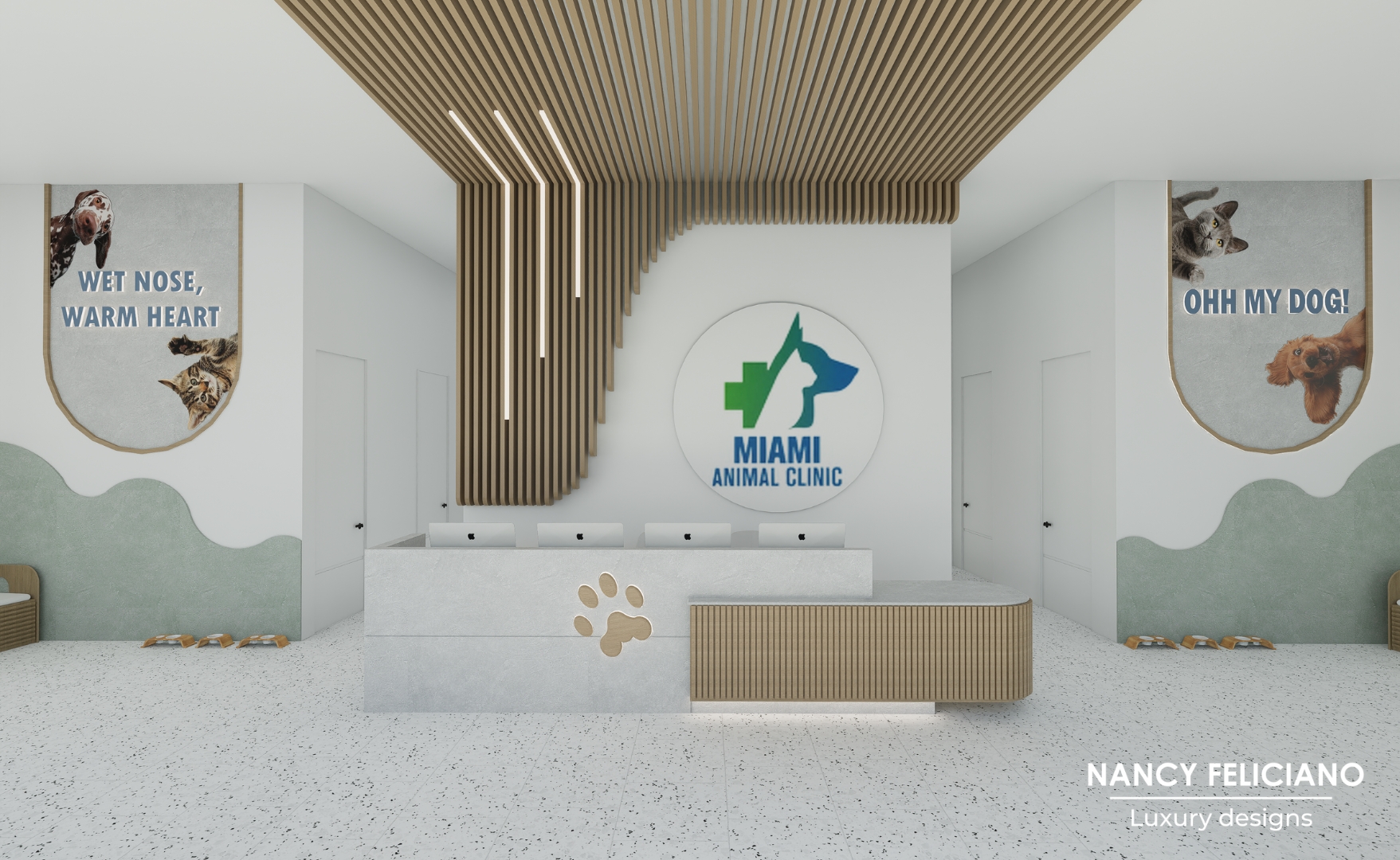 En Miami Animal Clinic diseñamos un ambiente cálido, funcional y moderno que refleja la dedicación de la clínica hacia el bienestar de cada mascota, la propuesta se centró en crear áreas limpias, organizadas y confortables, donde la estética se combina con la practicidad para facilitar el trabajo del equipo veterinario y, al mismo tiempo, transmitir tranquilidad a los visitantes, cada detalle, desde la iluminación hasta los acabados, fue pensado para reforzar la identidad de un lugar que inspira profesionalismo y confianza.